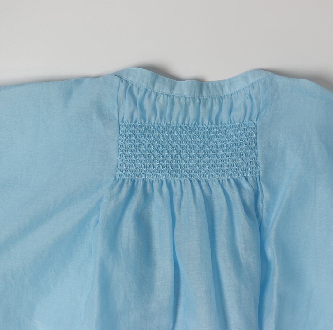 また、背中にはスモッキング刺繍をあしらい、後ろ姿にも表情を添えてくれています。
