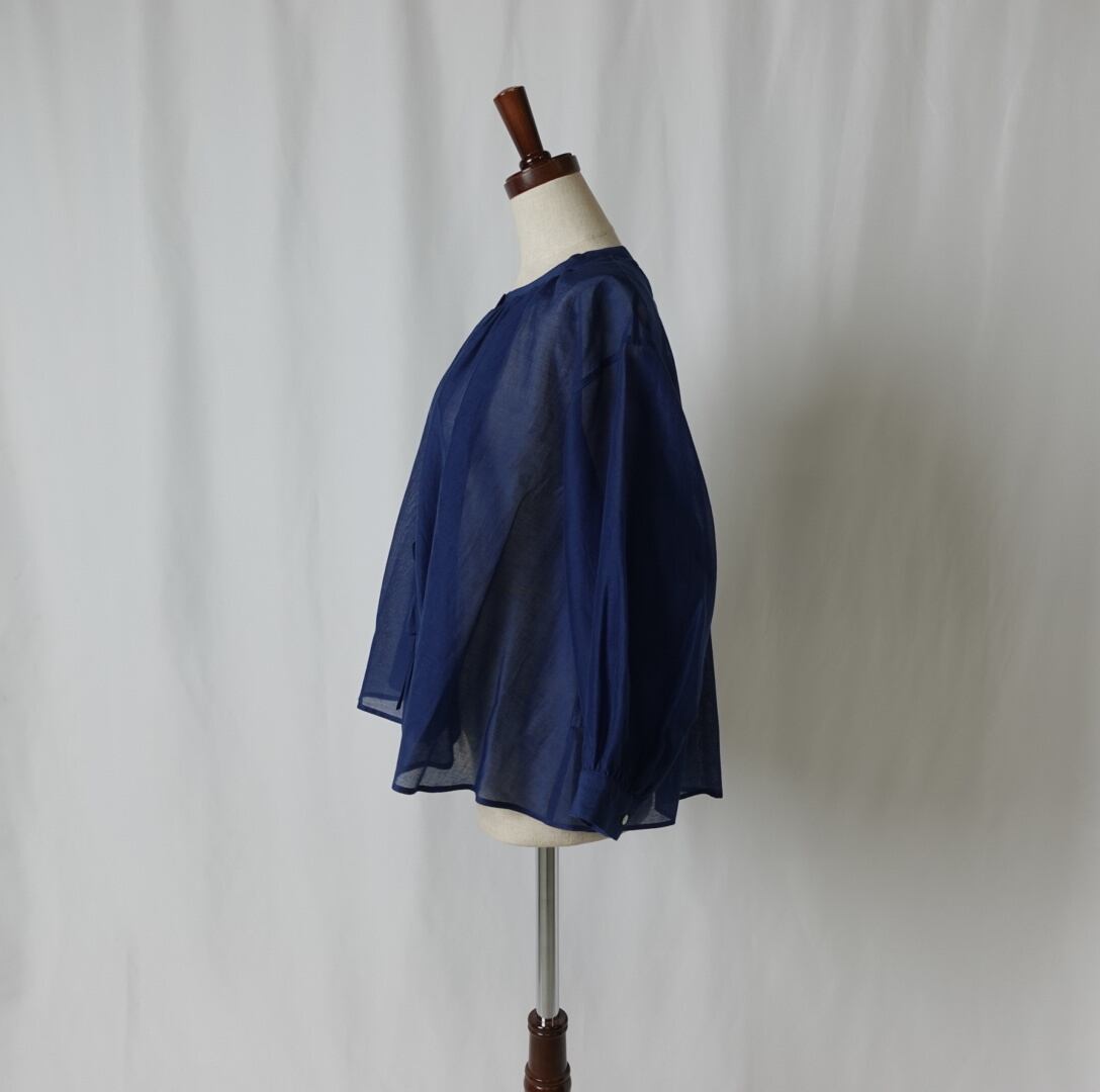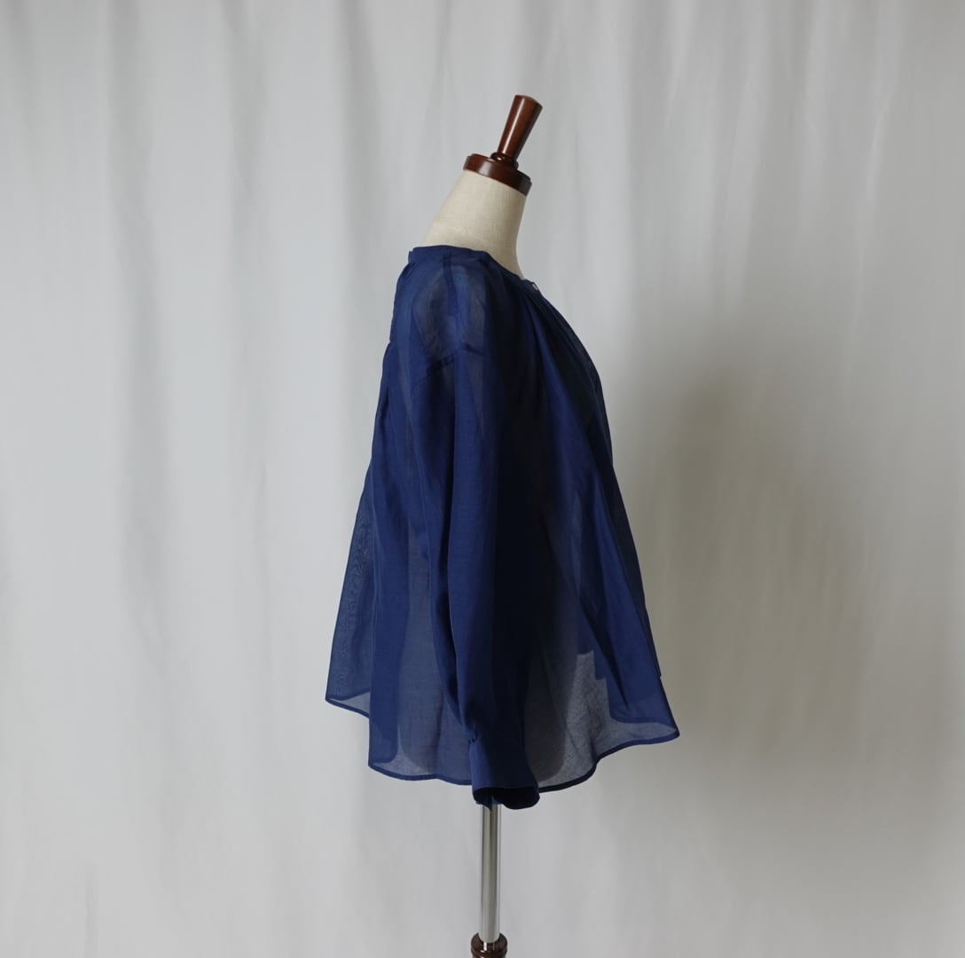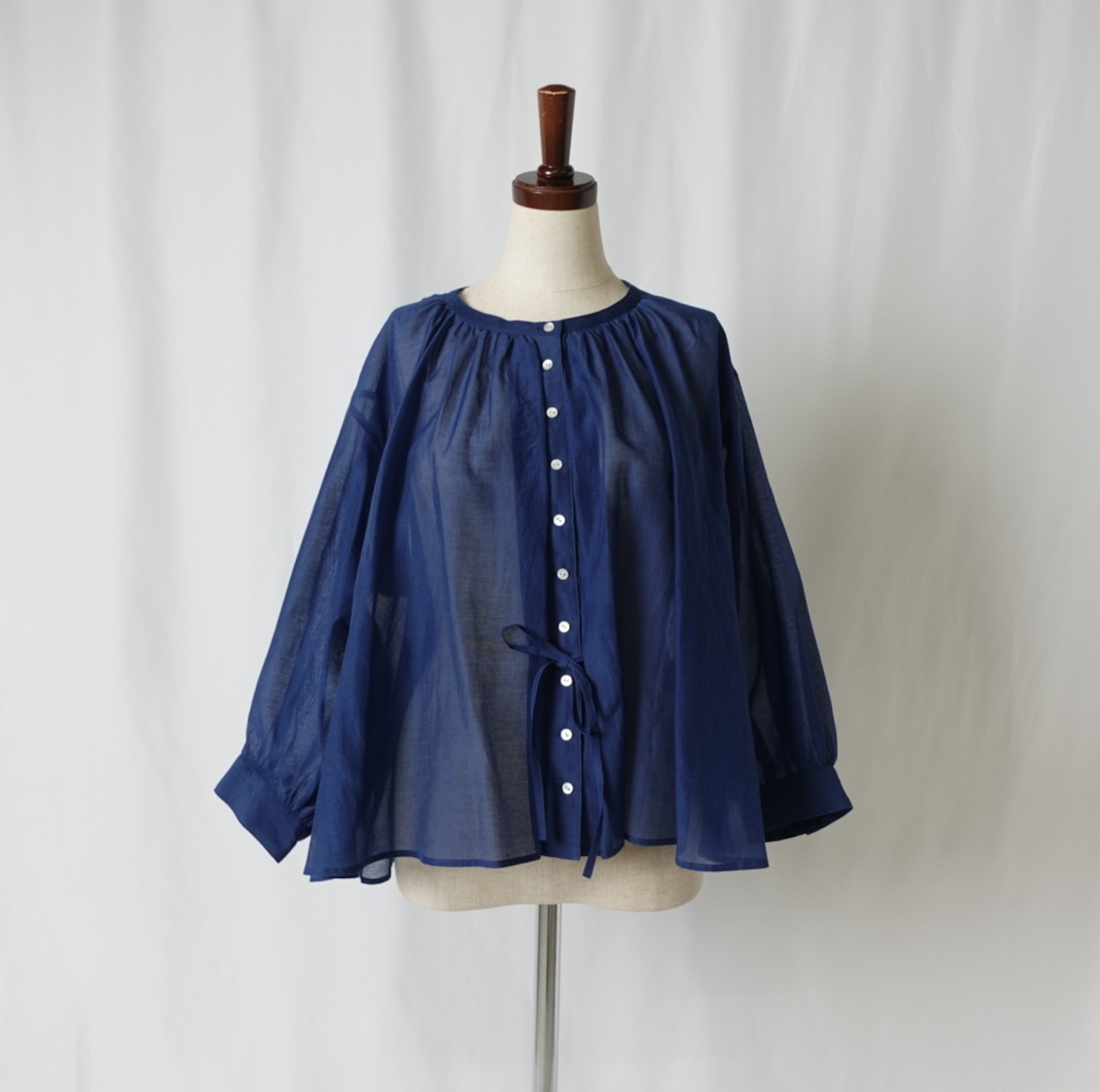 首周りやお袖に繊細なギャザーを入れ、程良いボリューム感のあるシルエット。お袖のデザインにも少し膨らみを持たせ、優しげで愛らしい雰囲気を纏っています。