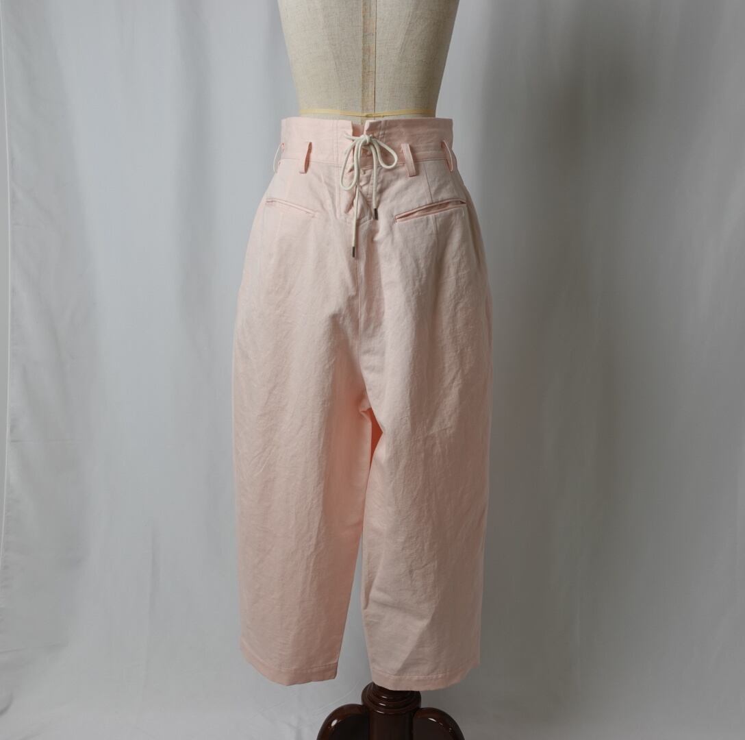ウエスト部分のカマーバンドのようなフォーマルの雰囲気も残した丸みのあるシルエットのパンツです。