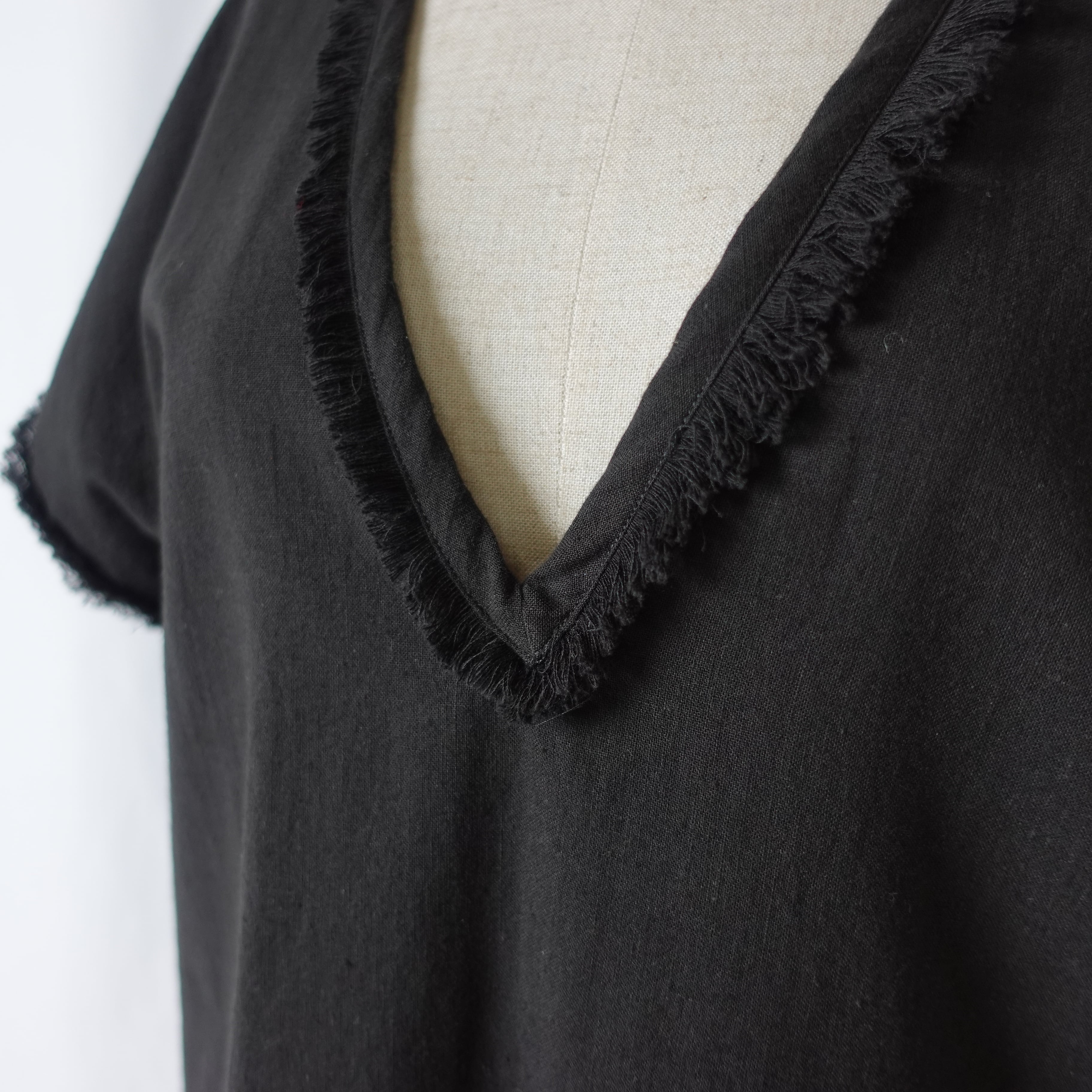 ざっくりと開いたVネック。