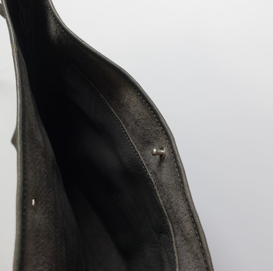 初めは紙のようなパリッとした風合いが、お使いいただくことで艶感と柔らかさが生まれ、味わい深いバッグへと育ちます。