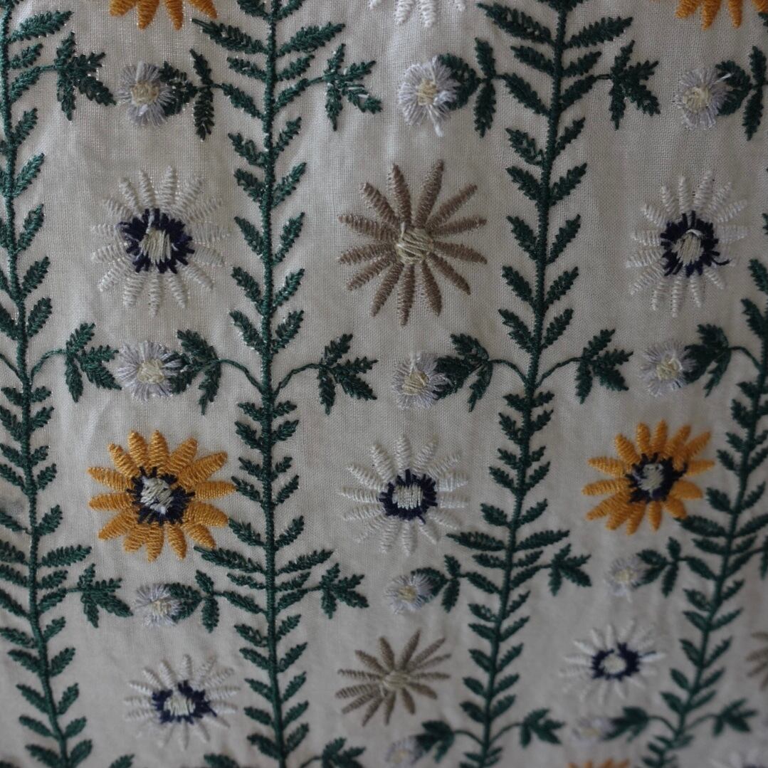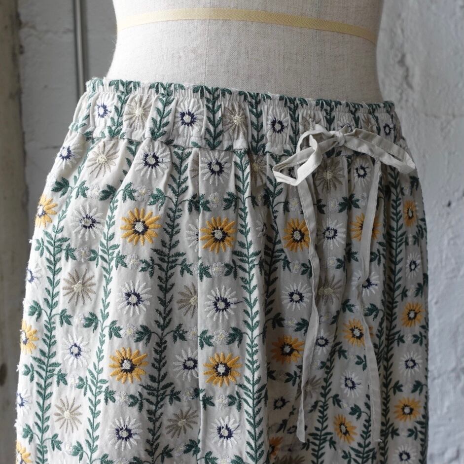 yuni コットン グリッドフラワー エンブロイダリー イージーパンツ